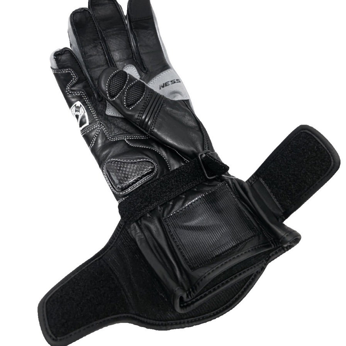 カーボンプロテクターが、甲/指部分/手のひらなど広範囲に搭載。